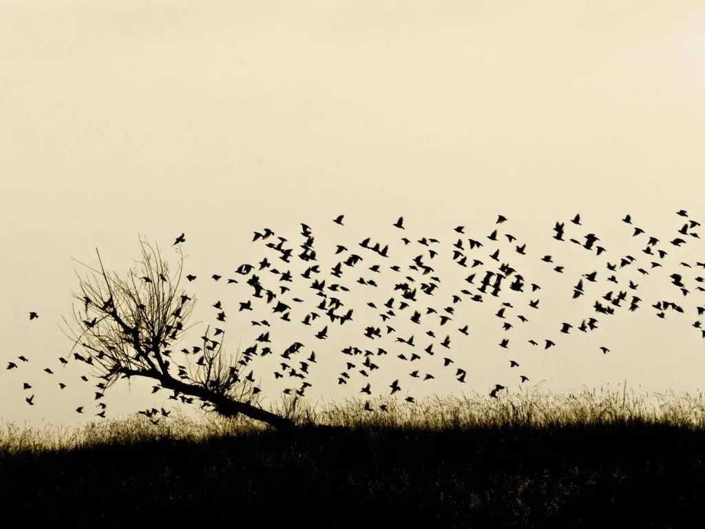 Vogelim Schwarm statt Zahnrädchen in der Maschine